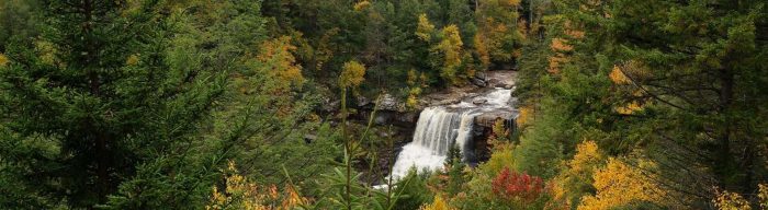 From sunrise to sunset photographers will have their lenses full of fall splendor in Blackwater Falls State Park. Two of the finest waterfalls in Tucker County are found here. Elakala Falls and Blackwater Falls are easily accessible. Sunsets over Blackwater Falls are best captured from the Gentle Trail Overlook, which is handicap accessible. The premiere sunset location is Lindy Point Overlook. At nearly 1,000 feet above the Blackwater Canyon and the presence of a towering chimney rock, great composition is not hard to come by. Sunrise at Pendleton Point overlook illuminates the walls of the Blackwater Canyon.