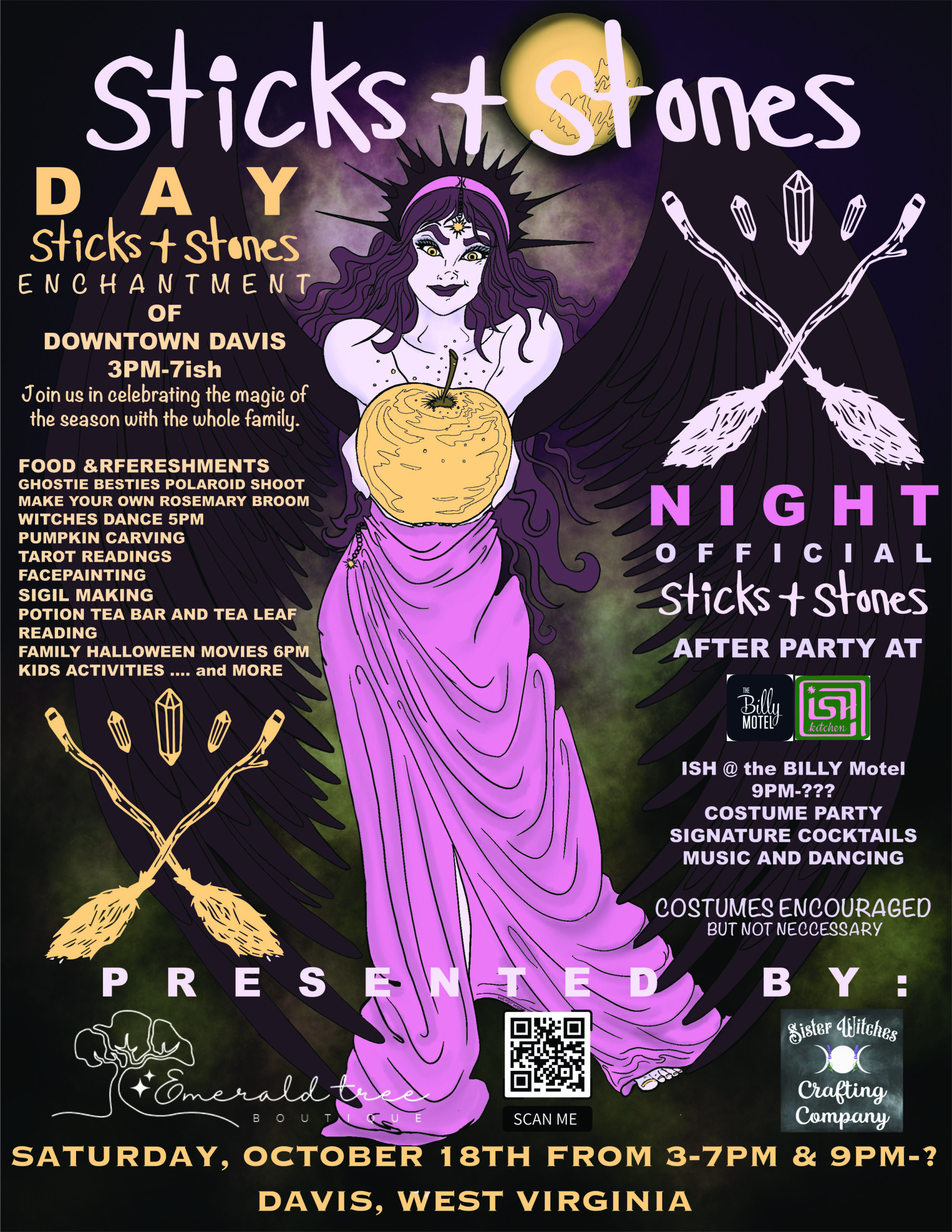 We invite you to join our Third Annual Sticks & Stones festival. This year, we are thrilled to celebrate the season with our biggest festival yet. Sticks and Stones will be partnering with many local businesses to enchant the streets of Downtown Davis, West Virginia, with magical fun for the whole family. Come out and enjoy: