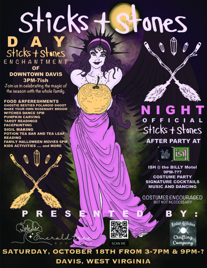 We invite you to join our Third Annual Sticks & Stones festival. This year, we are thrilled to celebrate the season with our biggest festival yet. Sticks and Stones will be partnering with many local businesses to enchant the streets of Downtown Davis, West Virginia, with magical fun for the whole family. Come out and enjoy: