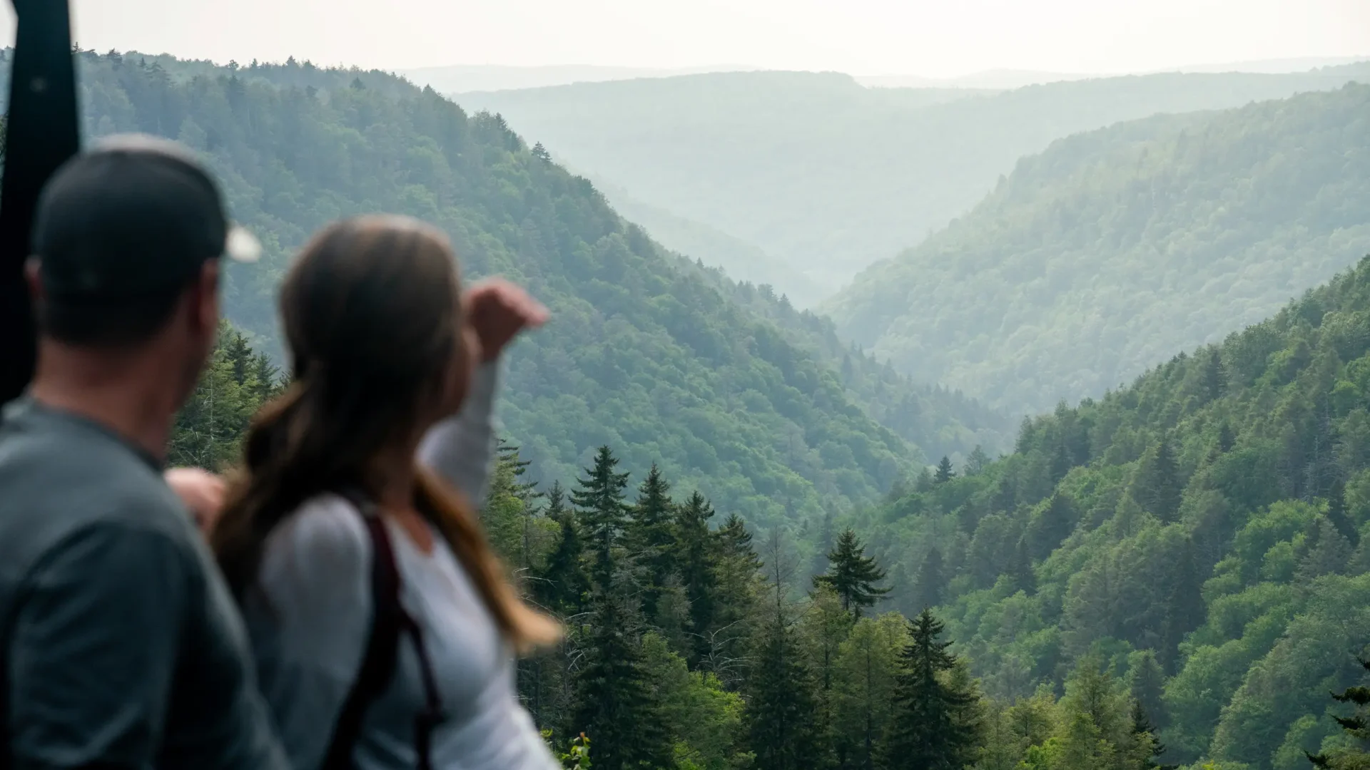 The roadside overlook provides breathtaking views from the top of Backbone Mountain to the farmlands below.